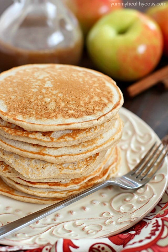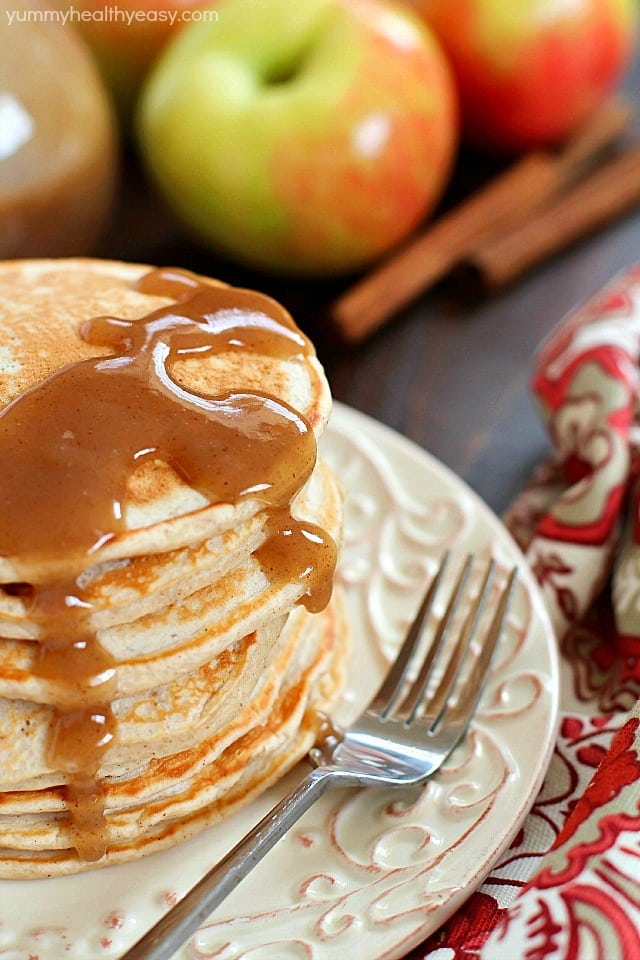 Start your morning with some Applesauce Pancakes with Cinnamon Syrup! They’re healthier, light, fluffy and full of fall flavors! (Thanks Truvia for sponsoring this post!)