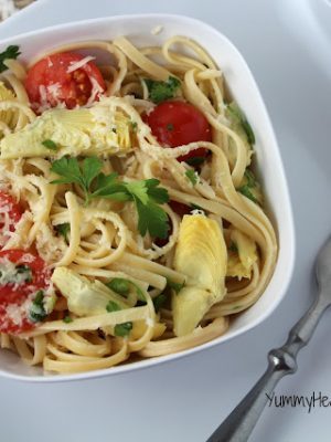 Quick Linguine with Artichokes, Tomatoes & Parsley