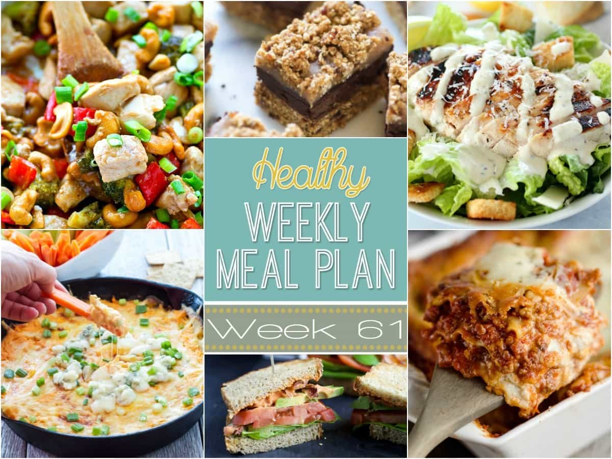 Healthy Weekly Meal Plan #61 is loaded with healthy dinner ideas! Plus a healthy breakfast, lunch, side dish and dessert that you will definitely not want to miss!