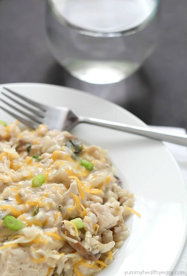 I used riced cauliflower instead of brown rice and really cut down on calories